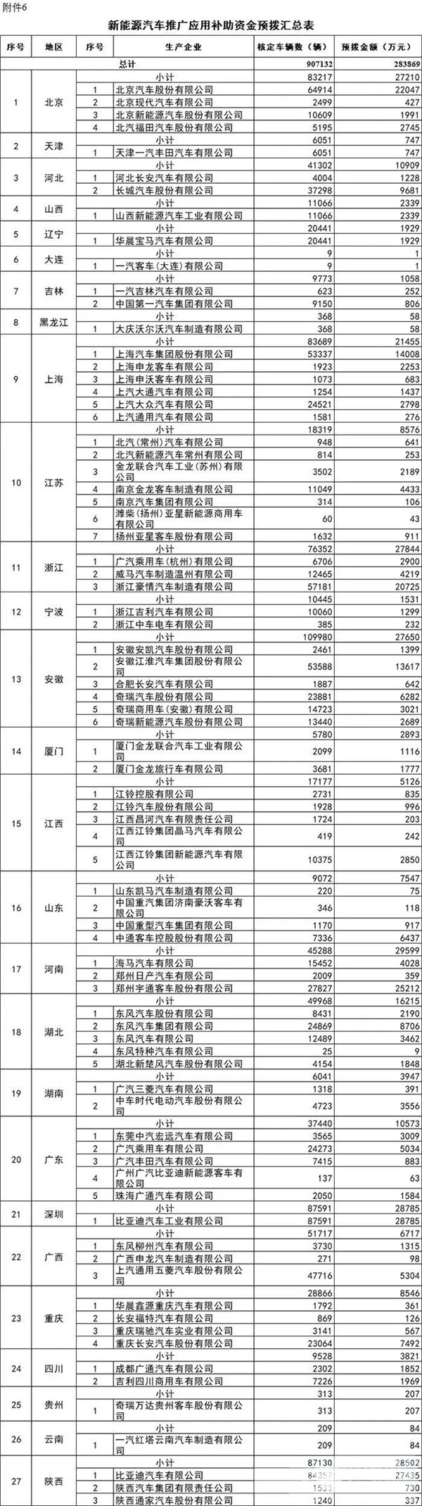 附:新能源汽车推广应用补助资金预拨汇总表