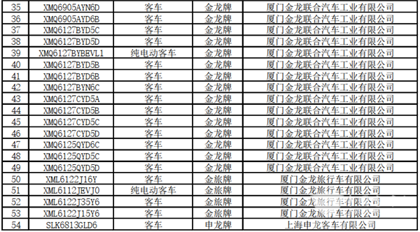 本次入选的125款客车产品分别来自宇通客车、比亚迪、金龙客车、金旅客车、苏州金龙、安凯客车、中通客车、中车电动等19家车企。