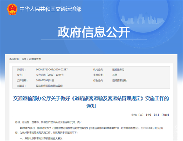 日前,交通运输部办公厅发布具体通知,针对《道路旅客运输及客运站管理规定》的实施工作作出具体安排。内容如下:
