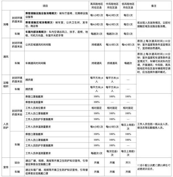 注:原则上暂停中风险、高风险地区所在城市跨城公交服务,并对途经中风险、高风险地区的城市公交线路实施甩站运行。
