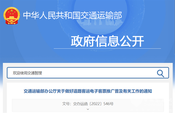 为深入贯彻落实《国务院关于印发“十四五”现代综合交通运输体系发展规划的通知》(国发〔2021〕27号)有关“提高道路客运联网售票水平,普及电子客票”的部署要求,经交通运输部同意,现就做好道路客运电子客票推广普及有关工作通知如下: