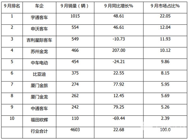 正是上述几个方面因素的叠加作用,导致今年9月新能源公交客车市场呈现同环比双增的良好发展态势。