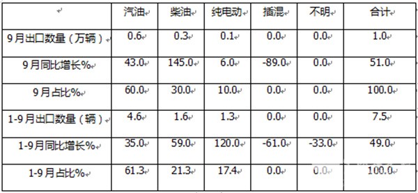 表1,2025年9月及前9月我国各动力客车出口数量及同比增长(数据来源:截图1)
