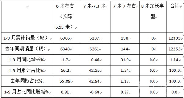 今年9月考斯特客车销量1696辆,居今年1-9月各月销量最高;但同比增速只有4.1%,增长有些乏力,因此认为,今年9月的考斯特客车“金九”市场不算太旺,只能算“弱现”。