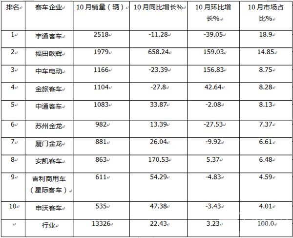 - 10月大中客车:宇通霸榜 中车杀入前三 欧辉“双领涨”