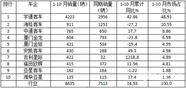 - 10月传统动力大中客车数据出炉 欧辉\宇通\海格居前三