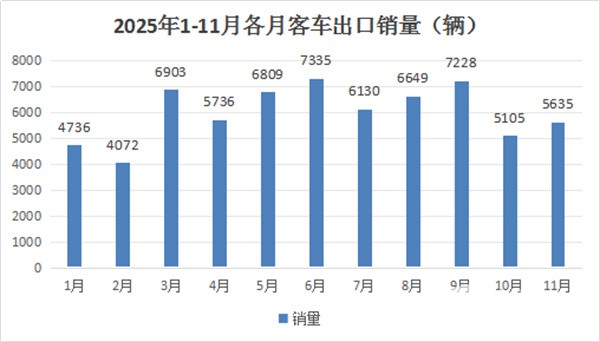 根据中国客车统计信息网数据,2025年1-11月各月我国客车出口数量: