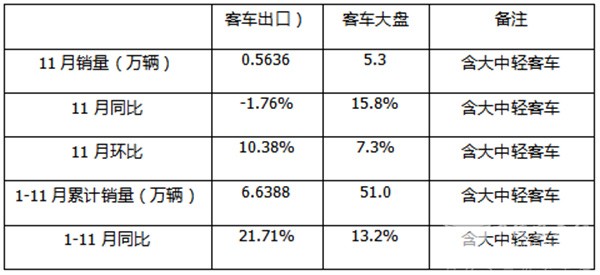 正是上述两个因素的叠加作用,导致今年11月我国客车出口销量出现了同比小降、环比增长1成的发展态势。