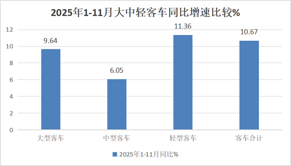 2025年1-11月大中轻客车增速均不高,说明2025年1-11月我国大中轻客车各细分市场相对均比较趋稳,主要是当前经济大环境不是太“给力”,各行业对大中轻客车的需求动力仍然显得不是很强劲。