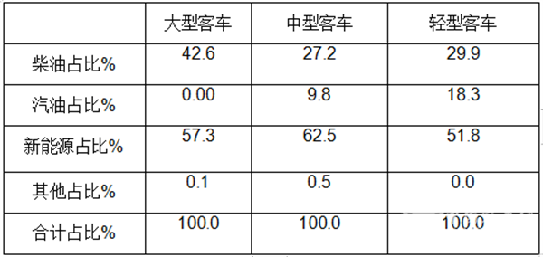 表5、据终端数据统计,2025年1-11月,按搭载动力燃料划分客大中轻客车占比结构: