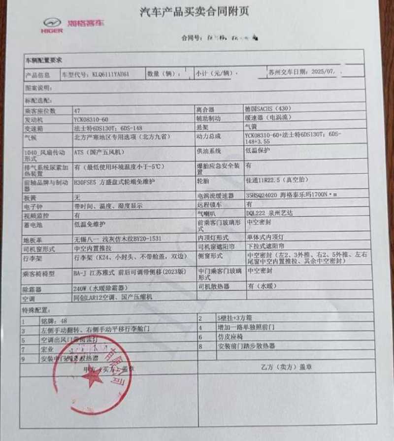 | 客车品牌 | 海格客车 | 上牌时间 | 2025-07-02 |