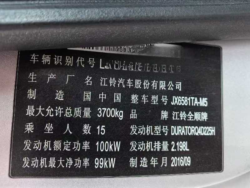 | 客车品牌 | 江铃全顺 | 上牌时间 | 2016-10-18 |