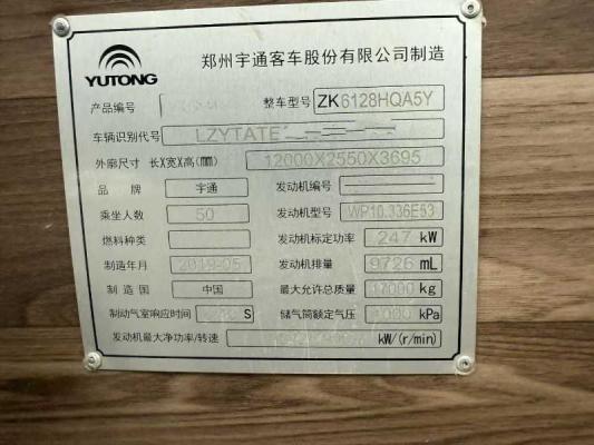 | 客车品牌 | 宇通客车 | 上牌时间 | 2019-06-12 |