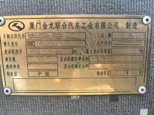 | 客车品牌 | 金龙客车 | 上牌时间 | 2013-10-18 |