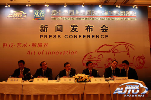 2008年12月11日,第十三届上海国际汽车工业展览会新闻发布会在上海四季酒店成功举办,可谓对当前我国汽车行业全力应对金融危机带来的“寒冬”点燃了一把火。新闻发布会上,中国国际贸易促进委员会汽车行业分会副会长王侠、中国国际贸易促进委员会上海市分会副会长王烈、上海市国际展览有限公司常务副总裁陆韧、上海市国际展览有限公司副总裁顾春霆、德国慕尼黑国际博览集团/IMAG国际展览会与交易会有限公司首席执行官Mr.HaraldMuller等嘉宾和来自全国汽车行业50余家知名媒体记者出席了此次会议。