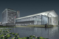 美国大使馆新馆位于北京朝阳区的天泽路第三使馆区,开馆后将有950名雇员在这里工作。新使馆有5座大楼构成。其中,8层的主办公楼玻璃外壳的颜色在一天中不同的时间,还会随着光线的变化而改变。