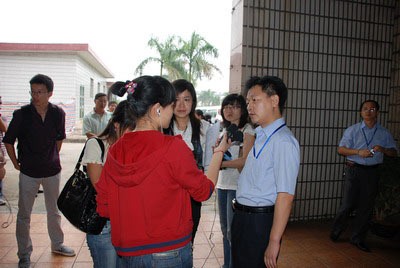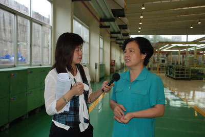 采访团在玉柴主要参观了试验室和重机装试车间。在试验室,记者们参观了噪声试验室等行业先进的试验室,在玉柴工程研究院副院长林志强的讲解下,记者们了解了各种试验台架的作用和研究方向,对玉柴在自主创新、工程研究院的机构设置、工作内容等问题也进行了深入采访。当看到装配YC4W、YC4F轿柴轿车时,记者们纷纷涌上前拍照,并不断向林志强询问玉柴轿柴发动机的相关问题。玉柴记者询问了国际在线记者殷亮的感受,他说:“玉柴是广西工业企业的缩影,同时玉柴也为民族产业的发展做出了贡献。”