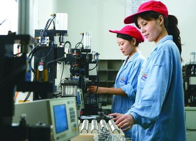 成都威特技术工人正在分组筛选泵体零件