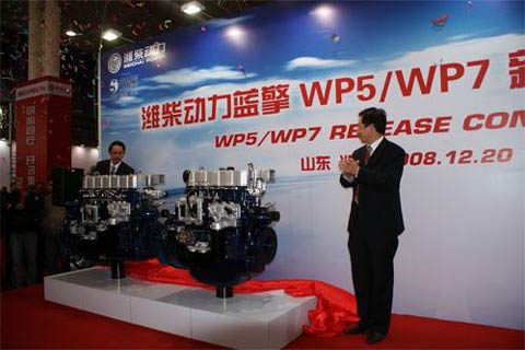 在2008年12月20日举办的商务大会上,潍柴新推出的两款新机型——WP5、WP7系列柴油机,成为寒冬里的一个亮点,这两款承接了潍柴动力核心技术优势,导入了国际最先进的研发理念,是潍柴动力为8~12米客车、中重型卡车及各种工程机械量身定制的,像它的WP10、WP12同门兄弟一样,这一历时三年研发成功的新机型,不仅具有结构紧凑,动力性和经济性卓越,操作简单和维护方便等优点,而且完全满足了欧Ⅳ和欧Ⅴ排放标准,是客车、卡车、工程机械的理想动力。按照欧洲试验标准,经过了严苛的可靠性和耐久性试验,以及一万多小时的台架试验和10万公里整车道路试验、三高试验,表明它的经济性和排放性更好,最低油耗仅为189g/Kwh,加上它的整体式四气门气缸盖设计,使发动机体积更小、结构更紧凑、噪音更低,同时由于采用了强化程度更高的曲轴,使它有了更高的爆发压力,更大的扭矩。与国际先进的内燃机技术同步,使它有了无可置疑的先进性,在商务大会上甫一亮相,即引起了入会各界人士的高度关注。
