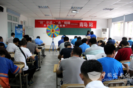 据了解,青岛公交集团共有五个运营分公司派代表共计100余人参加了此次青岛站“夏日送清凉”活动。整场活动在青岛公交驾校培训室举行,每张桌子上都摆放好了提前准备的活动宣传页、问卷调查、笔和饮料,整齐有序。活动内容分为三项,一是问卷调查,二是幸运大抽奖,三是有奖问答,活动现场非常热闹。最终,青岛站活动在合影留念后落下帷幕。