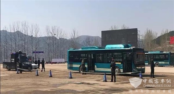 2019年4月1日上午,山东省公安机关公交车安全防范工作现场经验交流会在山东省公安厅综合训练基地举行。在现场看到,本次演练共进行了四项内容:乘客抢夺方向盘应急处置演练,公交车起火应急处置演练,公交车疑似爆炸物应急处置演练和公交车反劫持应急处置演练。演练中,现场逼真震撼,民警反应灵敏处置迅速,第一时间化解了一场又一场危机。现场还展示了多种公交车应急处置装备,确保人民群众的出行安全。