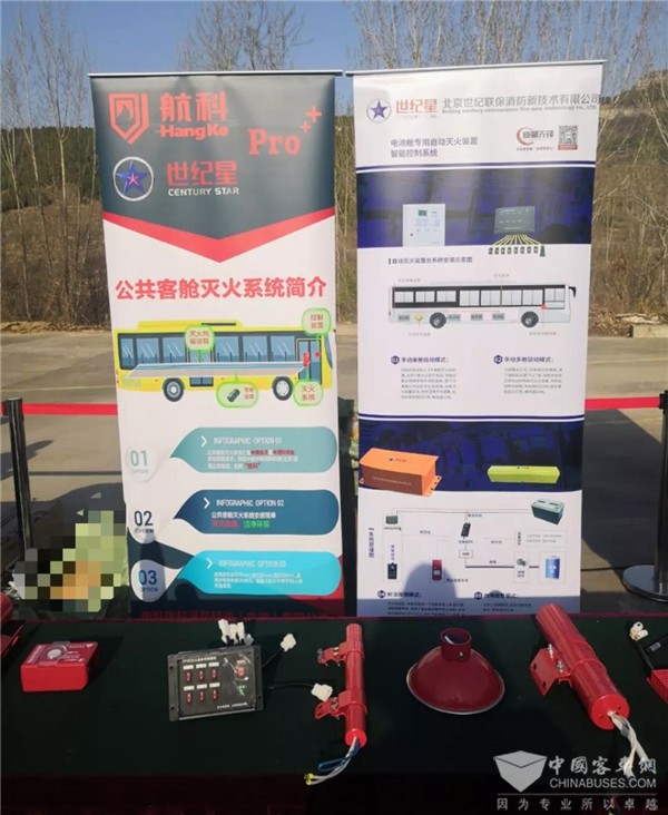此次公交安全应急演练,北京世纪联保很荣幸参与其中,并携带了电池箱(舱)专用自动灭火装置,GKM-YQ-25-HK型公共汽车客舱灭火系统,CAN易燃挥发物监测告警装置,北京世纪星无线遥控自动破玻器 ,STD烟温火灾探测器等多款产品展示于演练现场。