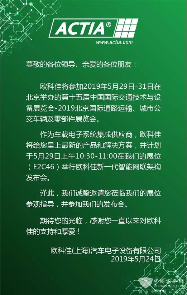 聚焦|2019北京道路运输展,欧科佳新一代智能网联架构发布在即