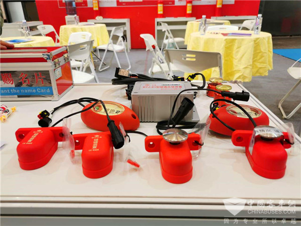 “本届上海客车展我们带来针对公交客车客舱的系列安防的另外一个核心产品就是乘客舱喷淋灭火装置。” 彭西南表示,该产品是针对客车乘客舱意外着火或人为纵火而引起的车厢内火灾专门设计的新型灭火系统。具备反应迅速快、技术领先、安装灵活、无毒无害、灭火效果强等特点。当发现火情时,该系统能够第一时间快速启动,阻止或延缓火情的迅速蔓延,为乘客快速逃生赢得宝贵时间。