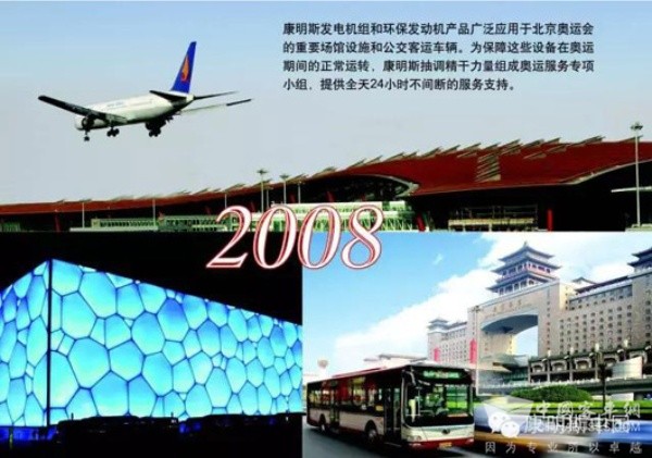 2008 年北京奥运会期间,装备康明斯欧 IV、欧 V 电控柴油机、CNG 和混合动力发动机的公交车担当服务主力,仅装配康明斯 ISB6.7 欧四混合动力发动机的公交车就有超过 860 辆投入运营。康明斯用先进的发动机技术助力北京奥运成为了一届 “环保奥运、绿色奥运”,彰显了其对中国市场的高度责任感。
