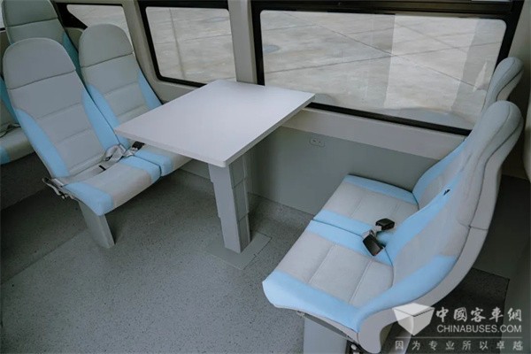 5米车身最多容纳13座,平地板区超5.1㎡,平时客流坐得多,高峰客流拉得多。