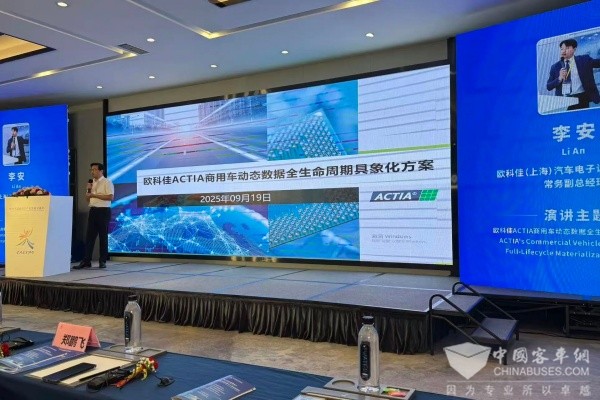 展会期间,欧科佳中国常务副总经理李安受邀在中国-东盟商用车产业发展交流会发表主题演讲,详细阐述了《欧科佳商用车动态数据全生命周期具象化方案》的核心理念与技术洞见。