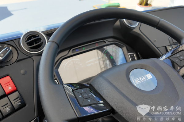 在商用车车载电子电气架构系统集成解决方案的展示区域,欧科佳的明星产品 —— PODIUM 2 智能座舱随动一体式仪表台凭借其卓越的交互性以及出色的定制化能力,得到了区域参观团的关注。目前,该产品已广泛应用于6-36米公交车、旅游车、观光车等车型。