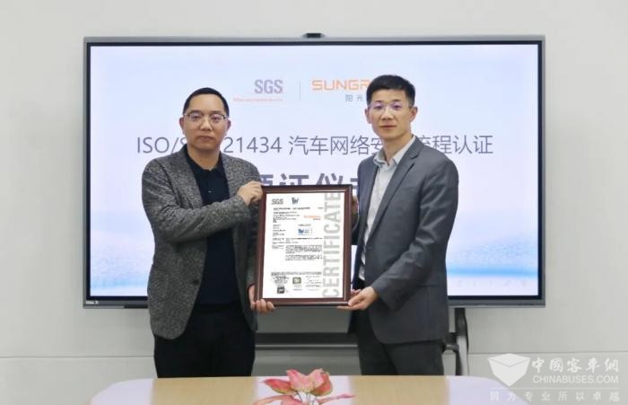 2025年11月25日,阳光电动力获得SGS颁发的ISO/SAE21434:2021汽车网络安全流程认证证书,标志着公司在汽车电子电气系统全生命周期网络安全管理能力已达到国际先进水平。SGS中国功能安全中心产品线总监郑峥,阳光电动力副总裁史良辰等出席颁证仪式。
