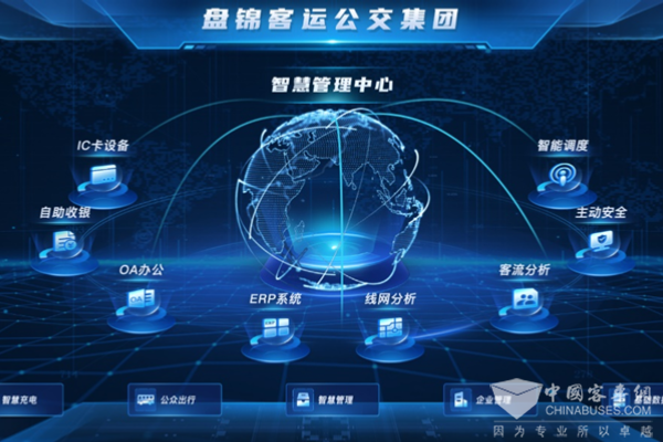 在本次《盘锦市绿色智慧公交示范项目》信息化建设中,天迈科技深度践行 “管理 + 技术 + 服务” 三轮驱动理念,同盘锦公交携手构建了“一个中心、三大平台、十二个系统”的智慧公交信息化体系架构。“一个中心”指智慧管理中心、“三大平台”为行业监管平台、企业运营管理平台、公众信息出行服务平台,“十二个系统”指公交智能调度系统、客流及线网优化系统、车辆化安全管理系统、企业资源管理ERP系统、公交大数据与决策分析系统、同城配送系统、充电运营管理平台、城市一卡通管理系统、出行服务系统、公交行业运行监测系统、服务质量考核与发展水平评价系统等。通过打造一体化、多层级、智能化的盘锦公交信息化体系,实现了企业经济效益、社会效益与生态效益的有机统一,尤其是通过科技创新,赋能“公交+物流”、“公交+民生” 的创新模式,为全球中小城市提供了可借鉴的绿色交通发展方案。