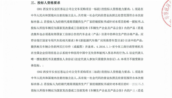 陕西省西安市长安区客运公司公交车采购项目招标公告