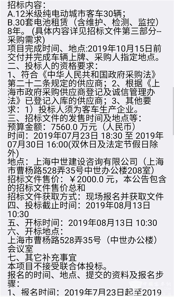 - 上海闵行客运服务有限公司7米级纯电动公交车采购项目(第二批)中 标公告