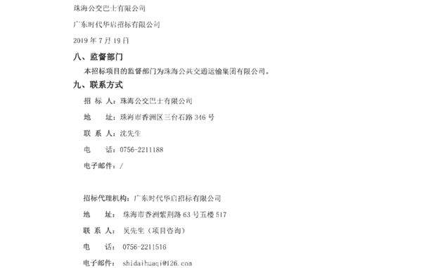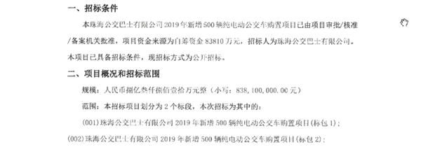 - 预算4.33个亿!珠海公交发布420辆纯电动公交车采购招标公告