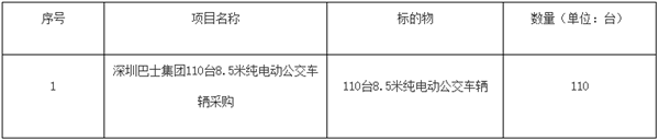 深圳巴士集团110台8.5米纯电动公交车辆采购招标公告