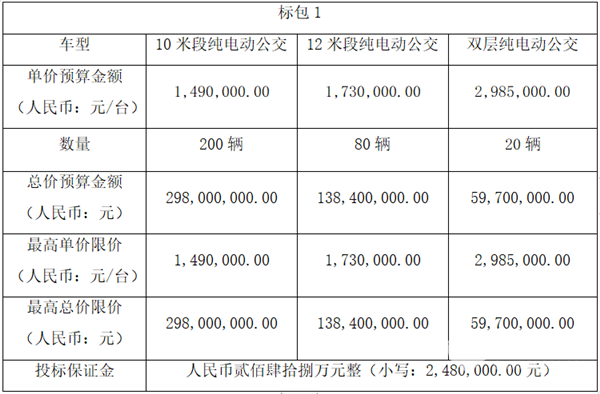 双层纯电动公交投标单价:¥2,981,000.00