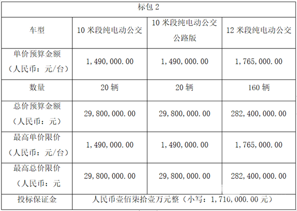 10米段纯电动公交投标单价:¥1,488,500.00