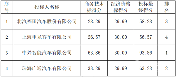 第一中标候选人:珠海广通汽车有限公司