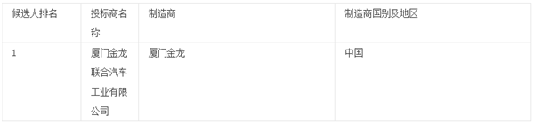 - 2025年营运客车采购(第一批)中标候选人公示表