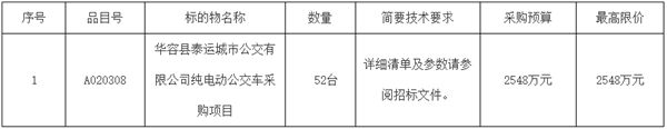湖南省华容县泰运城市公交有限公司纯电动公交车采购项目招标公告