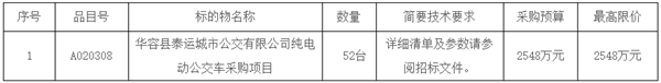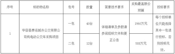 一、项目名称:华容县泰运城市公交有限公司纯电动公交车采购项目