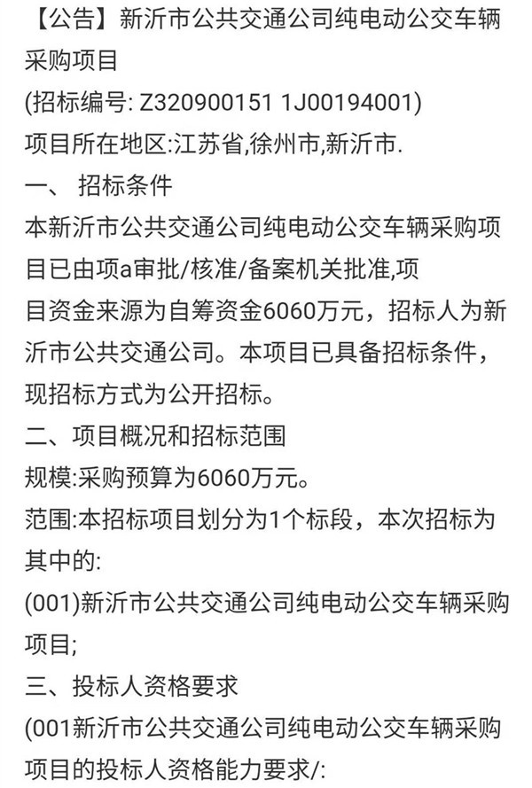 江苏省新沂市公共交通公司纯电动公交车辆采购项目招标公告