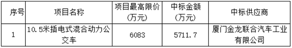 浙江温州交运集团汽车服务公司10.5米插电式混合动力公交车采购结果公示