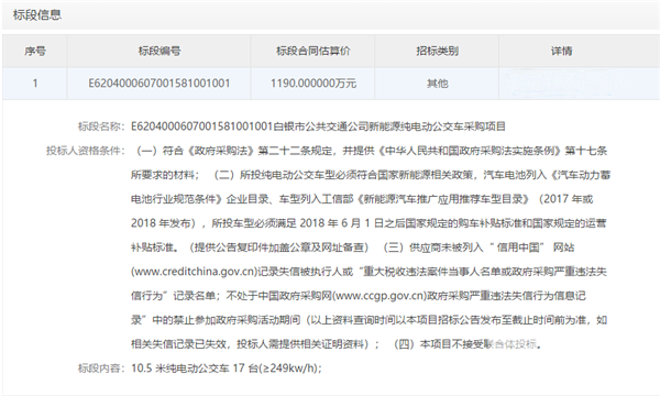 甘肃省白银市公共交通公司新能源纯电动公交车采购项目招标公告