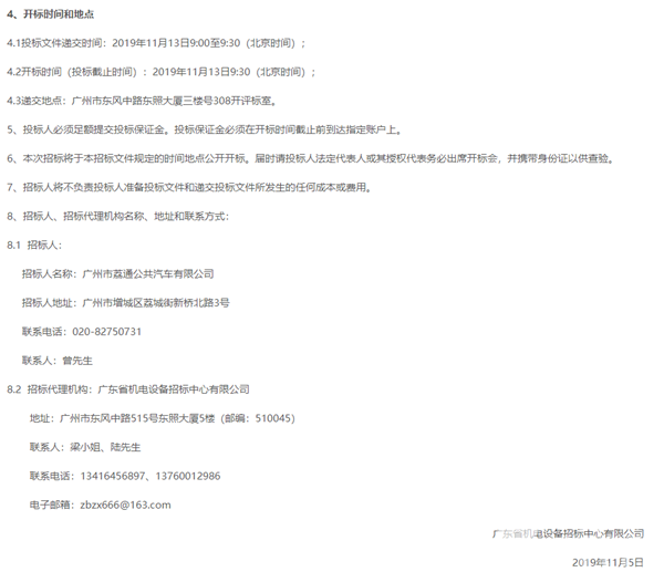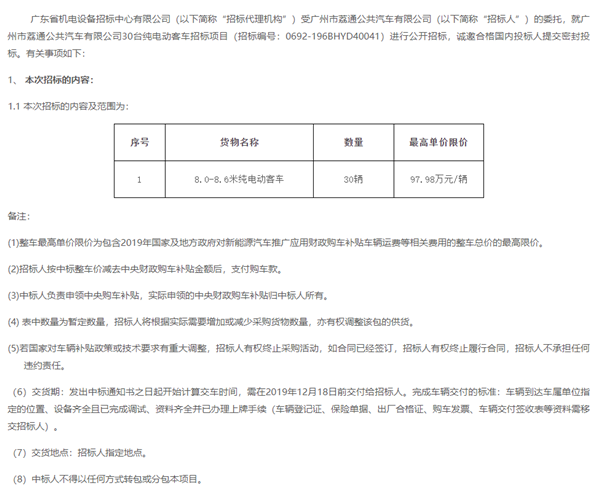 - 预算4.33个亿!珠海公交发布420辆纯电动公交车采购招标公告