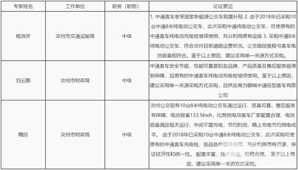 中通客车安全节能,性能可靠,是知名品牌,产品质量及售后服务能得到保障,且我市原有的中通客车纯电动充电桩继续使用,充分利用原有设备,中通客车享受国家新能源公交车的购置补贴,电池容量满足每天运行、中间不需要充电,节约时间,晚上充电节约用电成本,鉴于以上原因,采用单一来源采购。