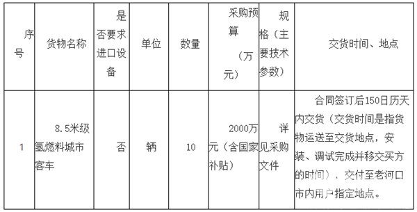 湖北省老河口市氢燃料电池城市公交车采购项目(二次)竞争性磋商公告